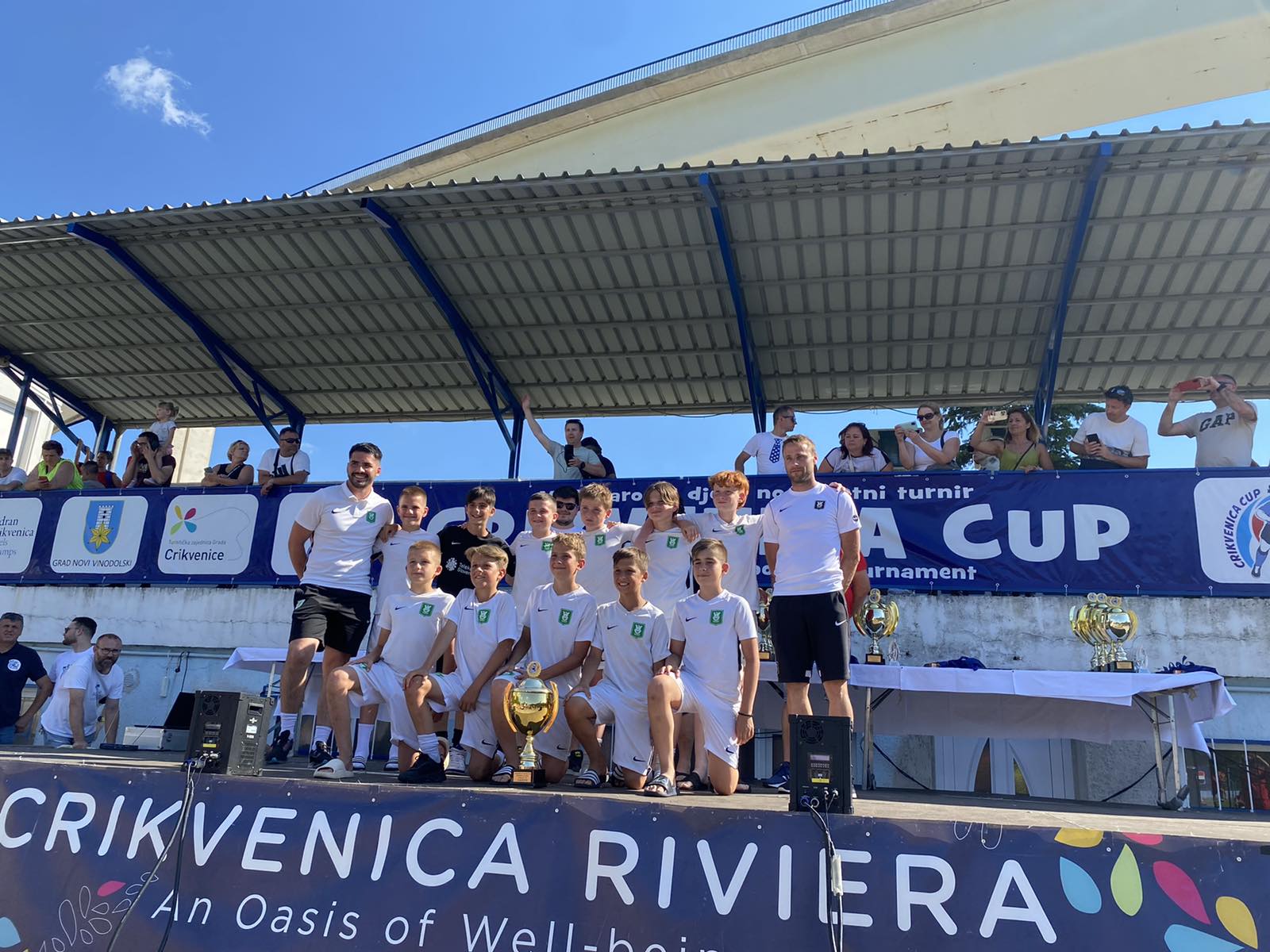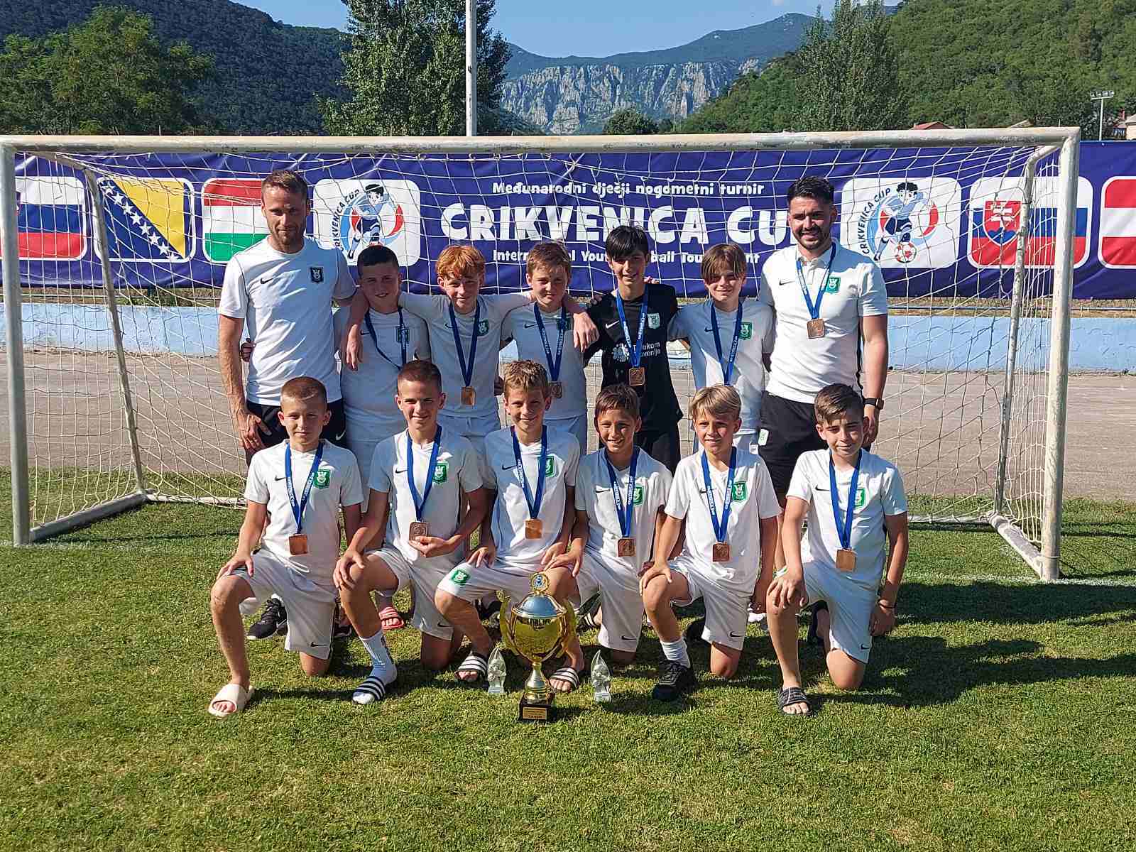 Tik pred začetkom šolskih počitnic se naša nogometna akademija z različnimi selekcijami mudi na turnirjih doma in po svetu. Eden takšnih je bil minuli konec tedna v Crikvenici na Hrvaškem, kjer sta zeleno belo barvo Olimpije branili dve selekciji. Ekipa U12 (generacija 2010) trenerjev Saša Avblja in Domna Vidergarja je turnir na Kvarnerju začela z odličnimi predstavami in enako blestečimi rezultati v skupinskem delu in se prepričljivo, kot prva, uvrstila v izločilne boje. Zmajčki so nato v osmini finala premagala HNK Mladost, v četrtfinalu Škofjo Loko, v polfinalu pa jih je zaustavil Aluminij iz Kidričevega. Navkljub bolečem porazu v polfinalu pa se zmajčki niso pustili zmesti. Zelo zbrano in motivirano so odigrali tekmo za končno tretje mesto in po prepričljivi zmagi nad ekipo Halubjan zasluženo vzeli bronasto odličje.